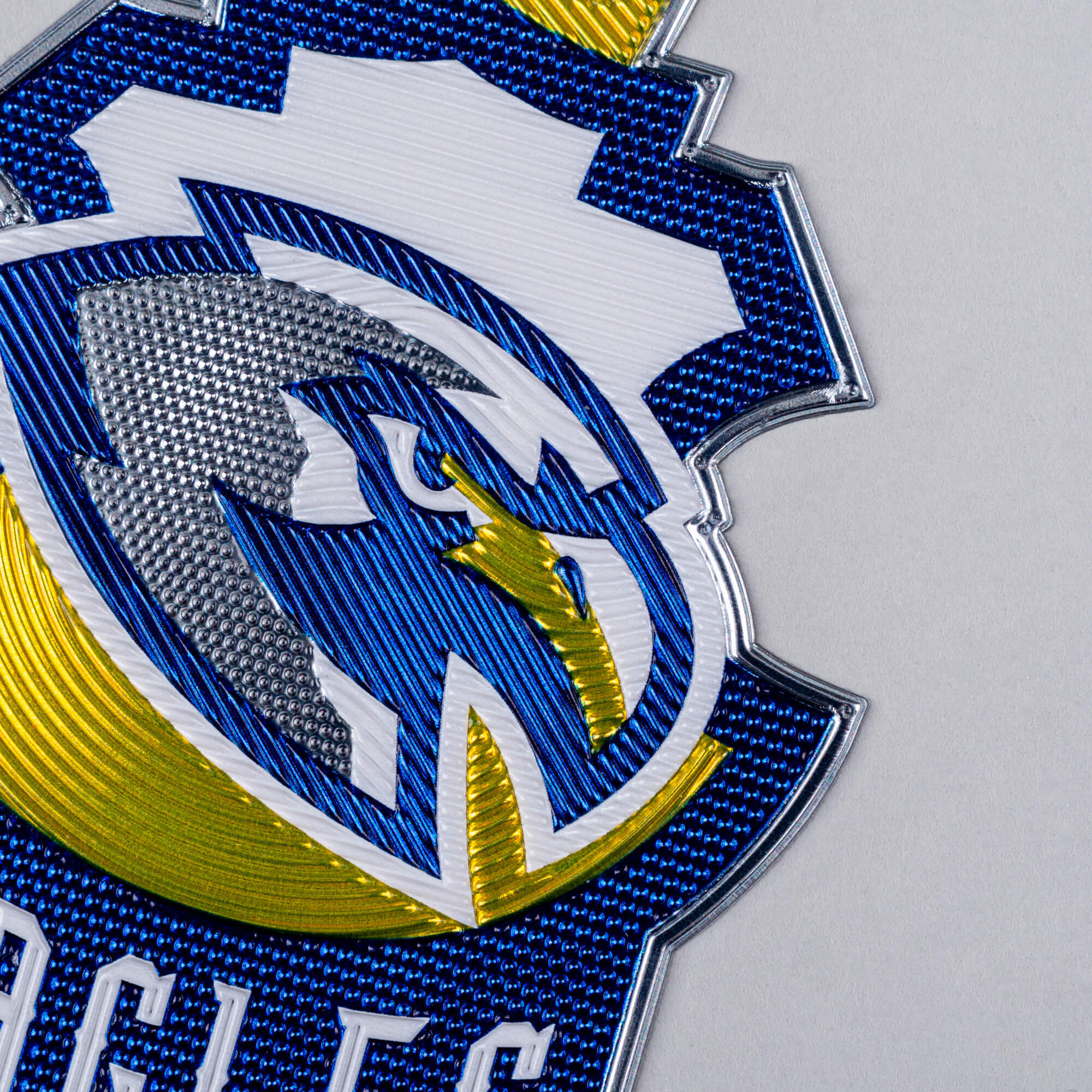 FlexStyle® Textured emblems are 100% textured, including floating text and other floating elements. Textures are predicated by each individual design.
