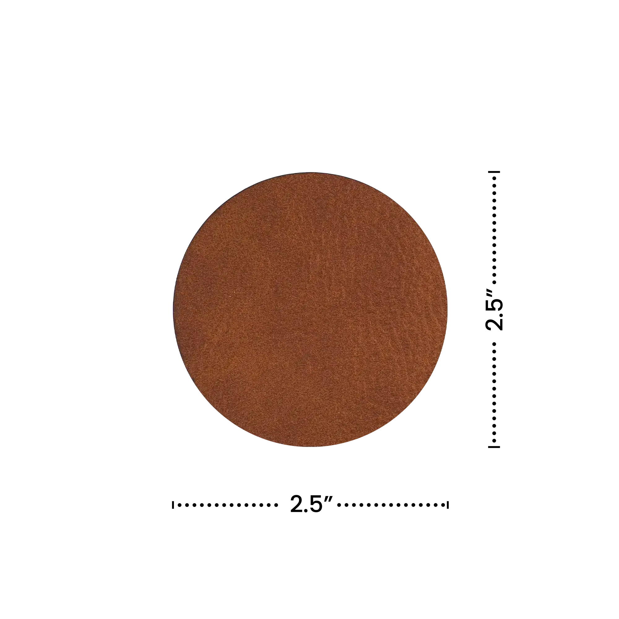 Pack of 25 - 2" - Blank Circle Patch - Faux Leather Chestnut/ Black - Heat Applied Backing