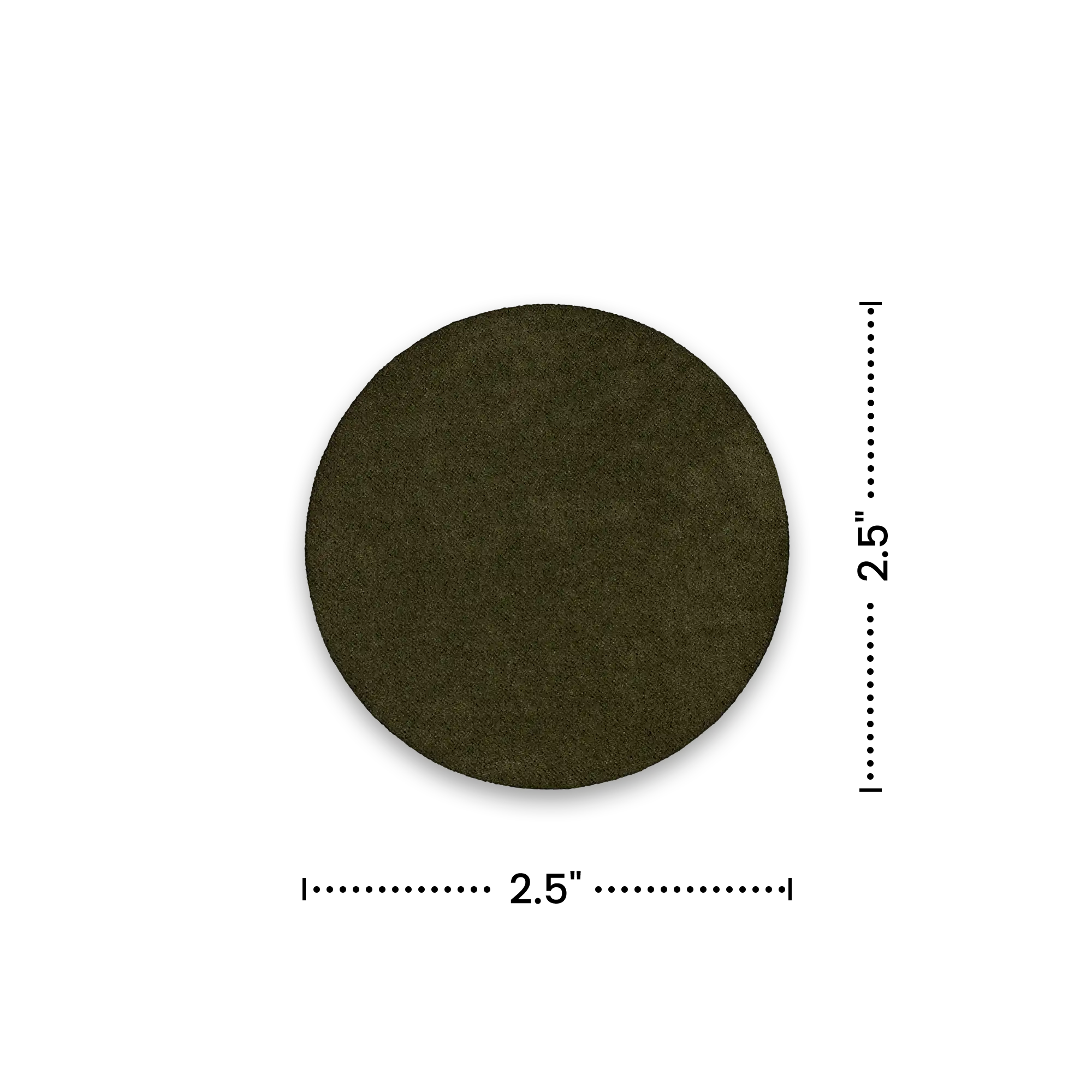 Pack of 25 - 2" - Blank Circle Patch - Faux Suede Military Green - Heat Applied Backing