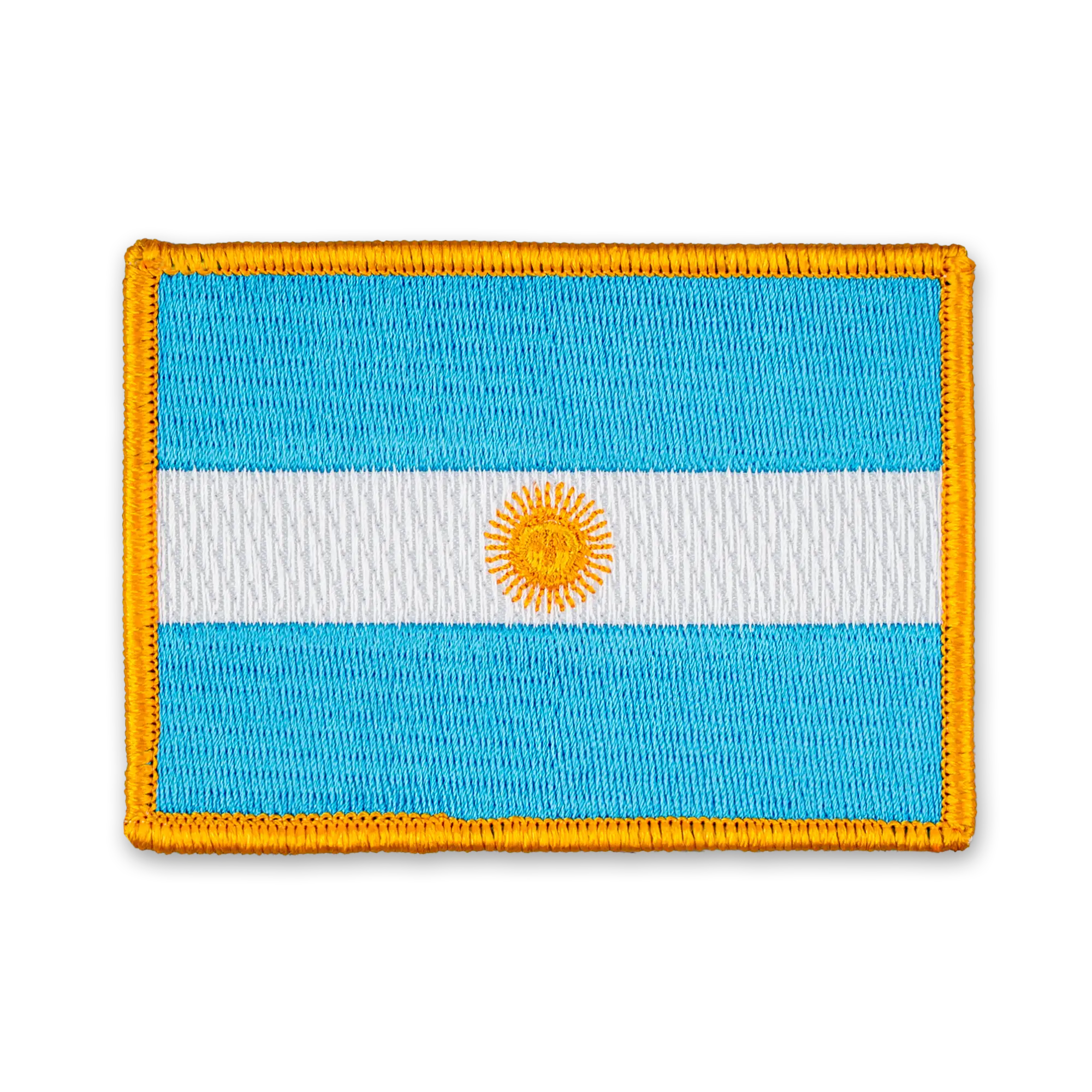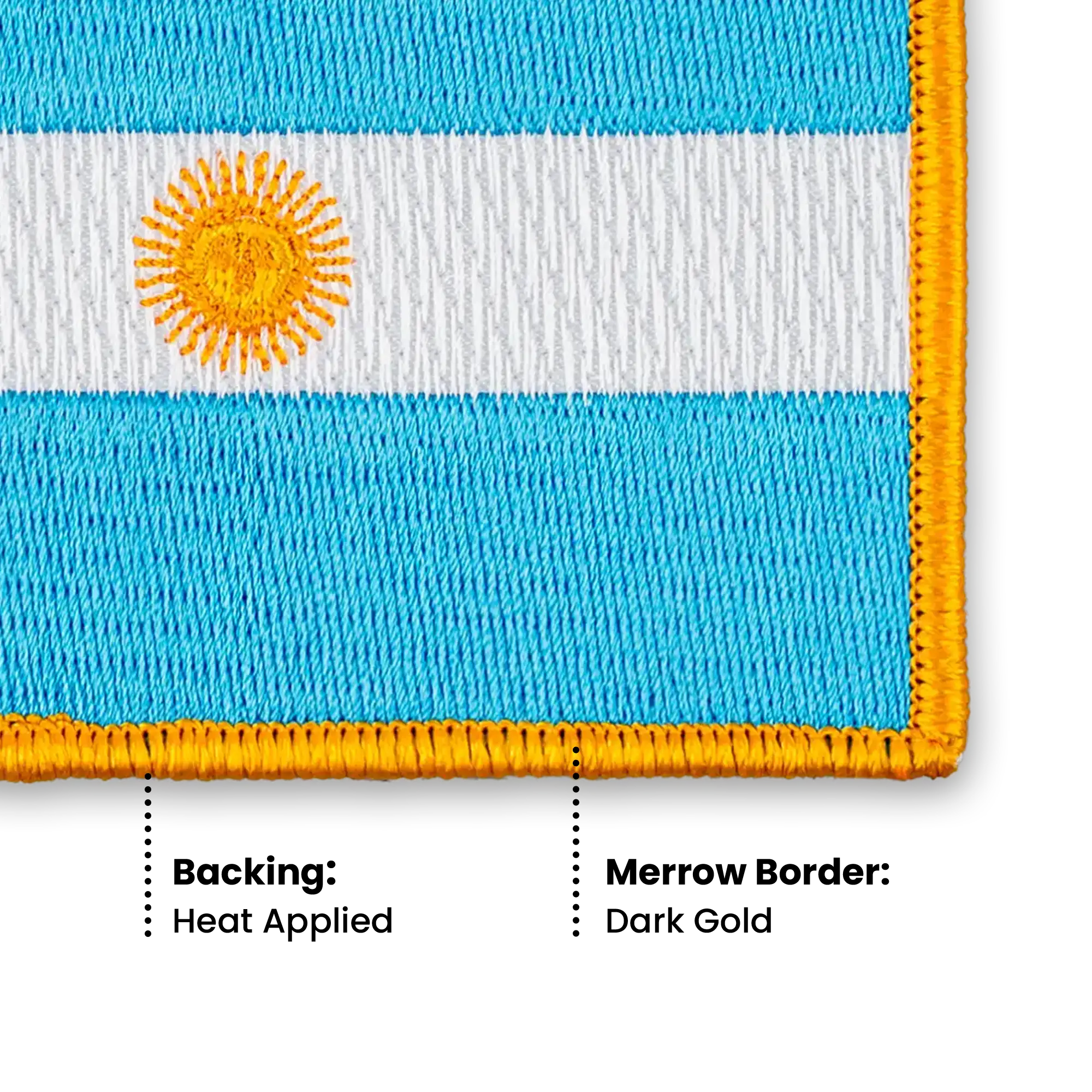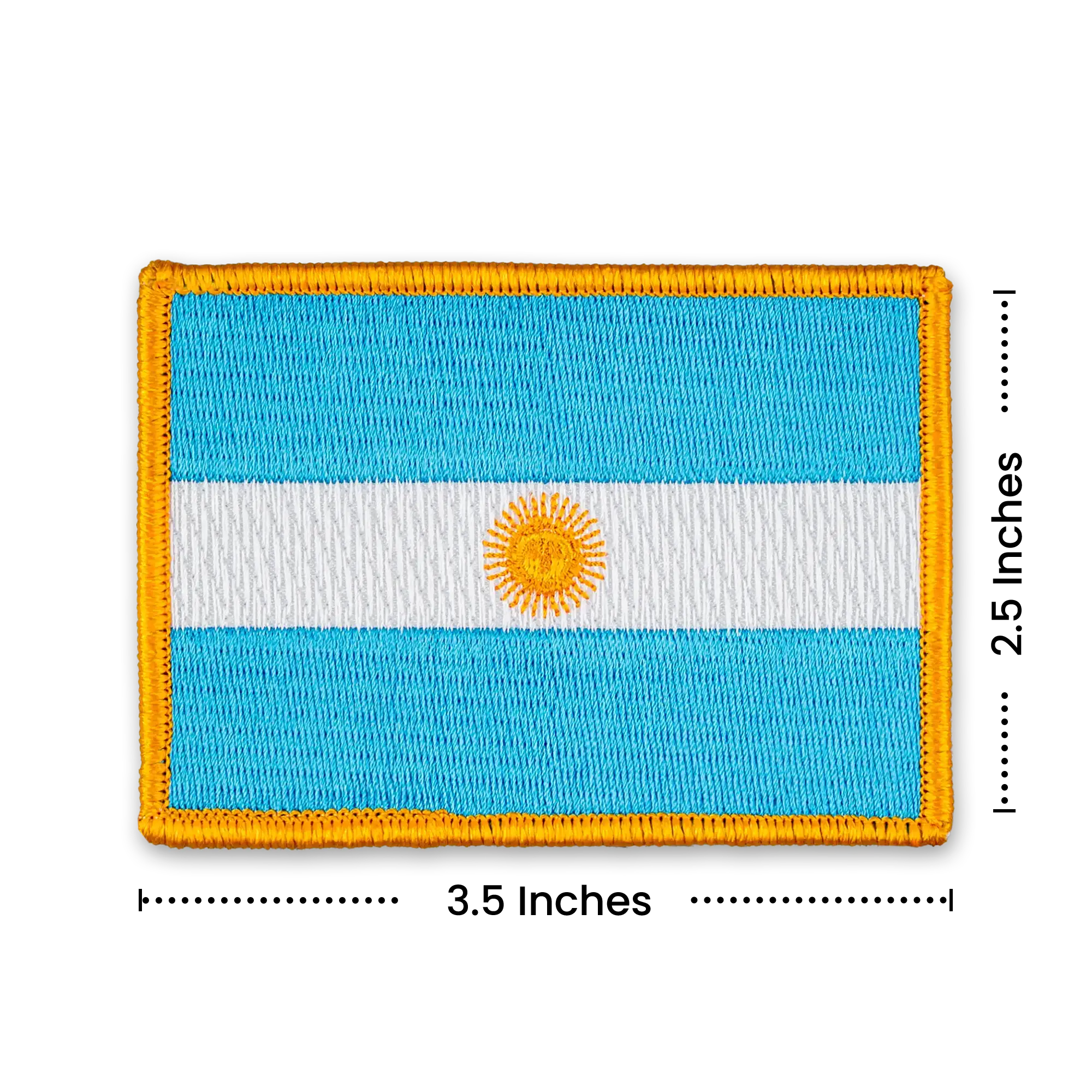 Pack of 25 - 3.5" x 2.5" - Official Argentina Flag Patch - Merrow Gold Border - Heat Applied Backing