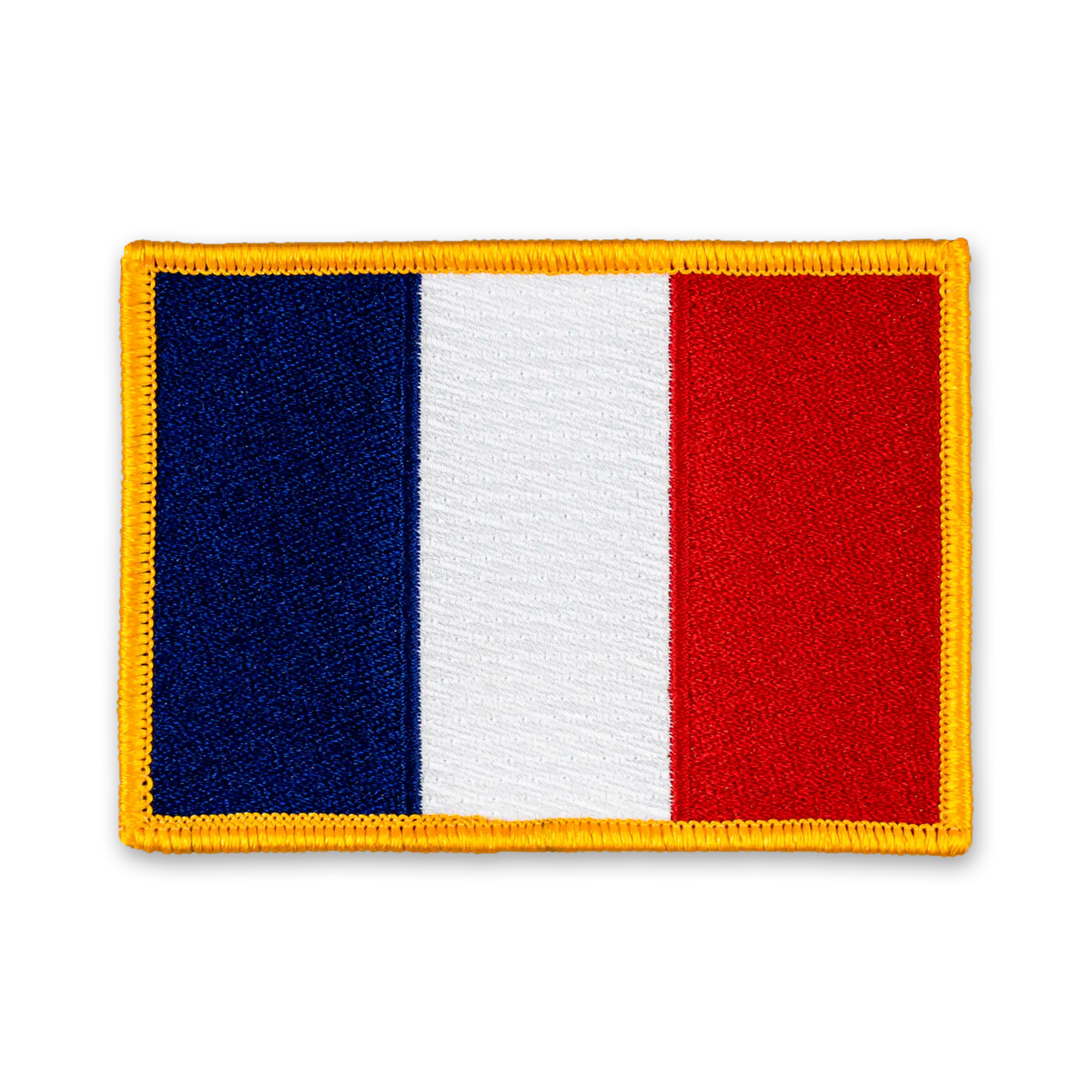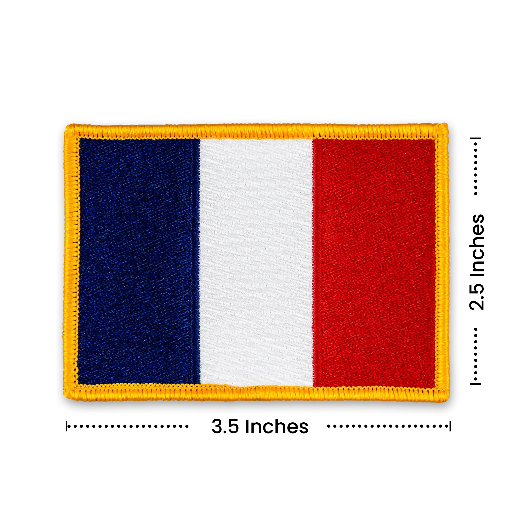 Pack of 25 - 3.5" x 2.5" - Official France Flag Patch - Merrow Gold Border - Heat Applied Backing